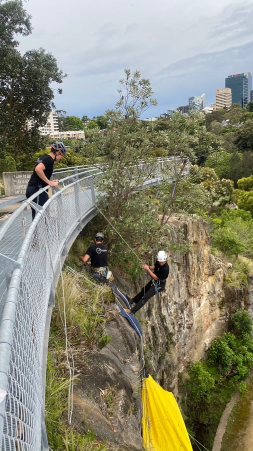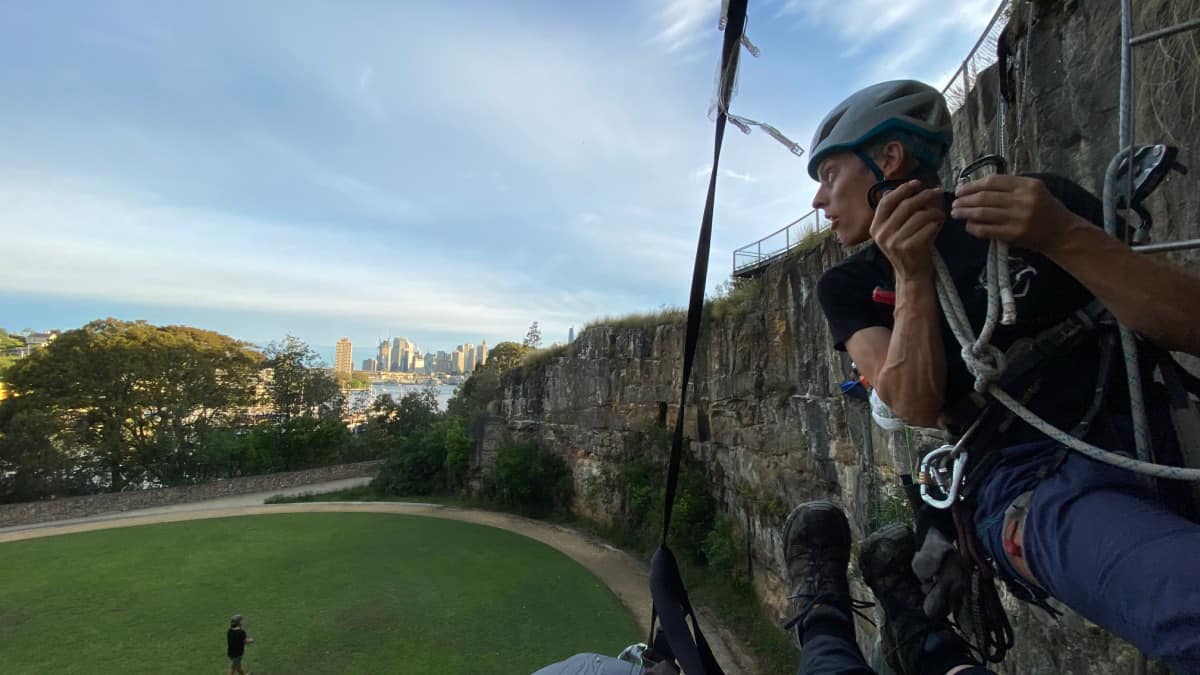 For the final episodes, filmed at the old gas works in Berry’s Bay, Waverton, Caro joined the team from Blue Mountains Climbing School for the setup and testing of the sleeping platforms (portaledges) where the three remaining teams were to spend the night, before the final race to the finish line at Mount Kosciuscko.